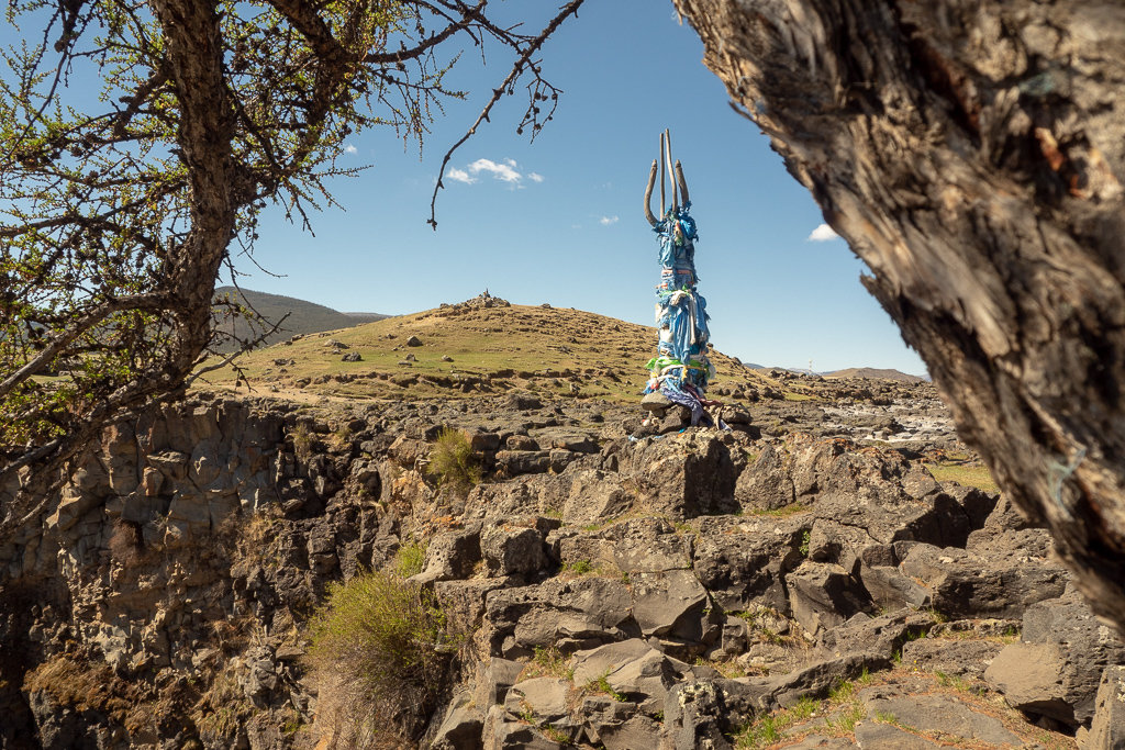 buddhistischer Weiheort am ausgetrocknete Wasserfall am Olchon