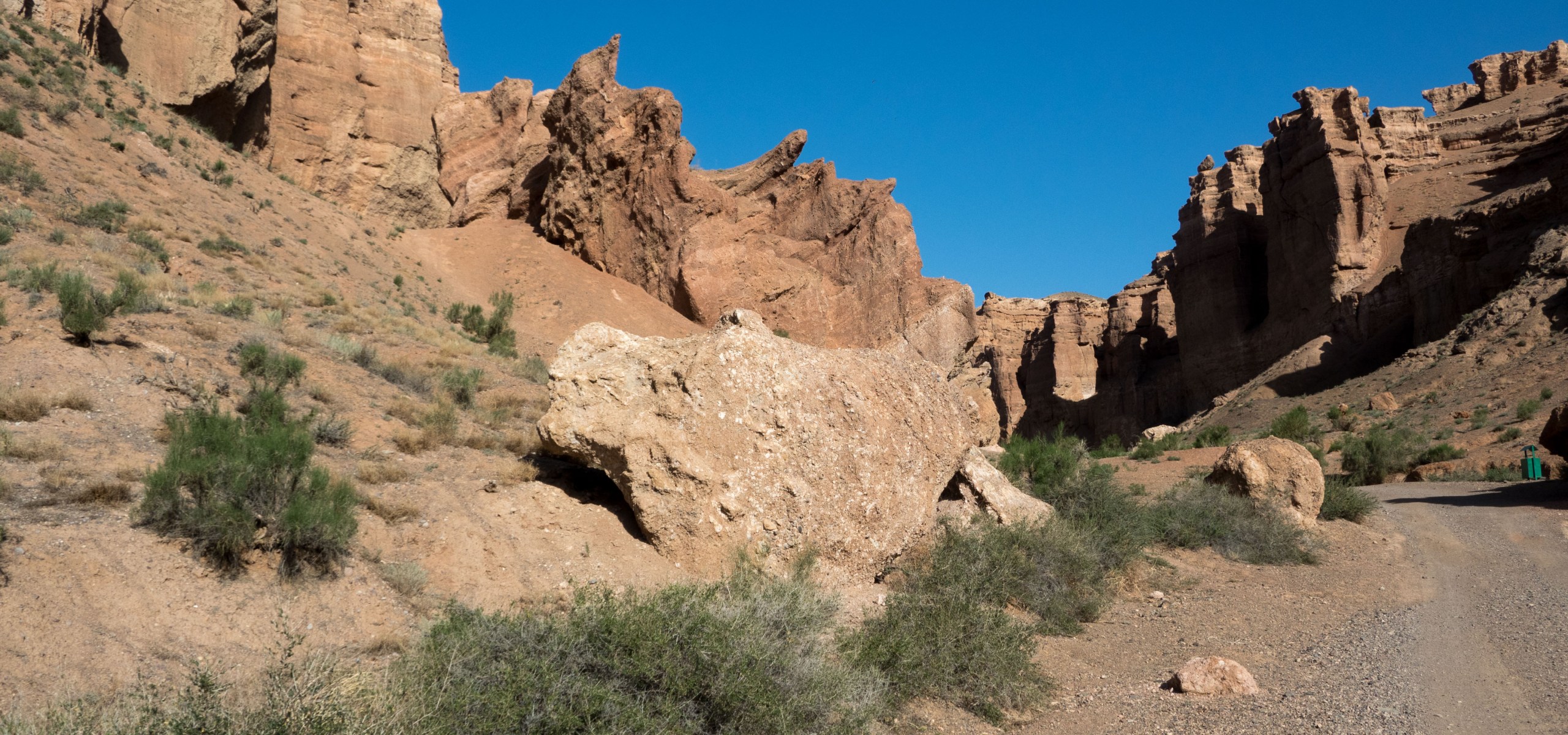 Der Canyon hält, was er verspricht: Das Naturschauspiel ist atemberaubend. Inzwischen haben wir uns als Team so aneinander gewöhnt, dass Eric vorschlägt, seinen Alamty-Besuch sausen zu lassen und gemeinsam mit mir Kasachstan zu queren. Ich schlage dankbar ein, wohlwissend, dass die langen, geraden Straßen Kasachstans eine mentale Herausforderung darstellen. Am nächsten Morgen geben wir uns der endlosen Steppe bei 35 Grad hin, und es wird Zeit den Mp3-Player einzuschalten.
