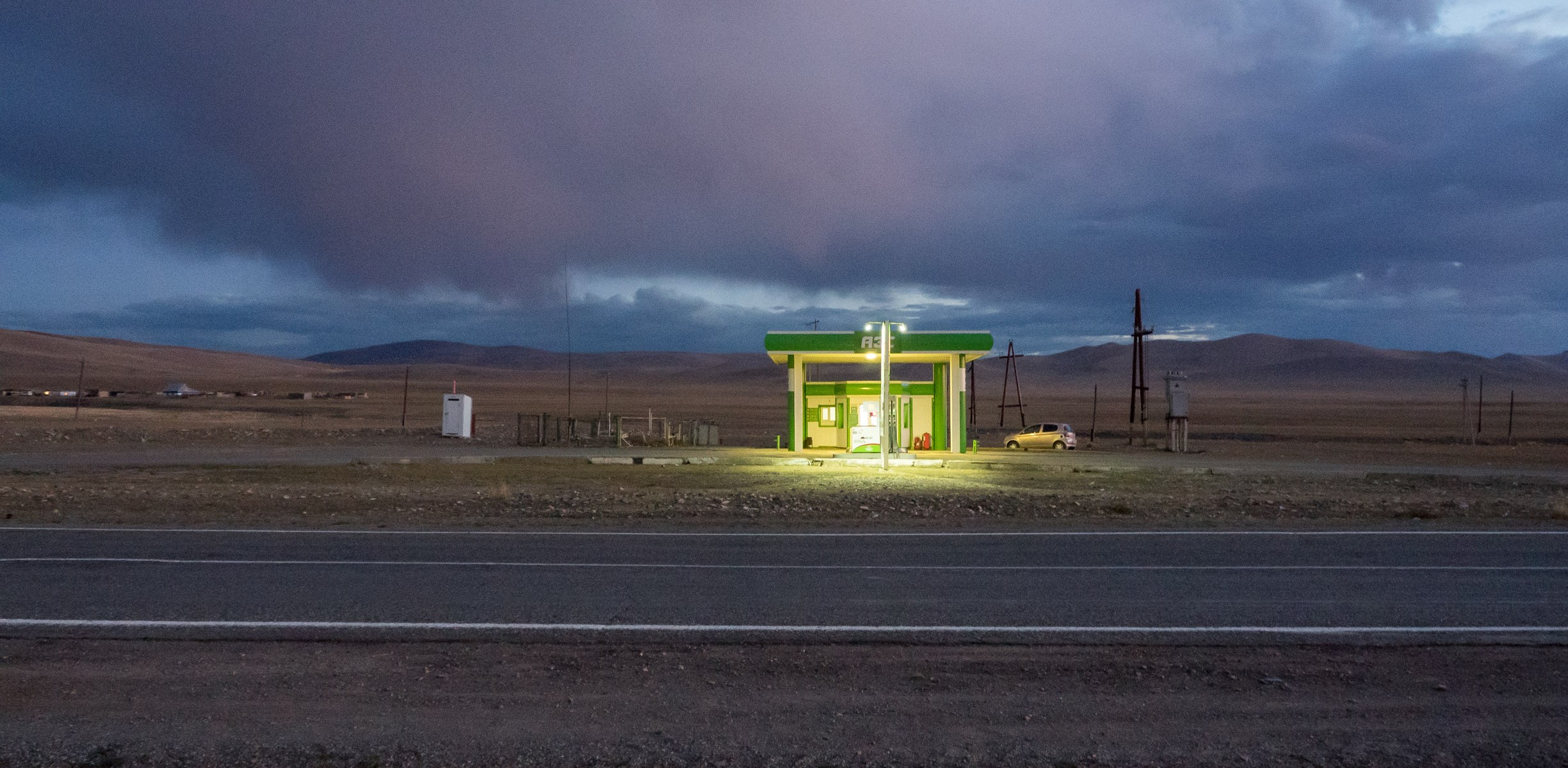Bogdan und Vali möchten nicht mehr weiter, wollen ein paar Kilometer außerhab des Ortes zelten. Ich fühle mich unter Zeitdruck und beschließe dem LKW in den Abend zu folgen. Ich hole den Laster ein, winke Mischa auf der Ladefläche zu. Wenige Minuten später schmeißt es mich dann selbst hin, glücklicherweise bei moderater Geschwindigkeit. Einer meiner Koffer scheint sich gelöst zu haben. Ein paar blaue Flecken wird es wohl geben, der Koffer ist verbogen und mein Handy ist in der Hosentasche zersplittert. Ich berappele mich, befestige den Koffer mit einem Spanngurt und versuche nun noch vorsichtiger durch die Dämmerung zu fahren. Einige Zeit später entdecke ich zwei Motoradscheinwerfer auf der Ebene hinter mir. Es sind Vali und Bogdan, die sich doch noch auf den Weg gemacht haben. Nachdem nach 100 Kilometern die Lichter der paar Häuser von Nomrog durch die Nacht blitzen, überreden mich die beiden, es dann doch für den Abend gut sein zu lassen. Wir kehren bei einer Familie ein, die eine kleine Bäckerei betreibt und dürfen für ein paar Tigru auf dem obligatorischen Podest in der Gaststube schlafen. Der 11-jährige Sohn findet uns super und zeigt mir alle möglichen Dinge auf seinem Smartphone, während ich zum Duft von frisch gebackenem Brot diese Zeilen schreibe.